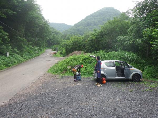 登山口である大黒屋さん付近のスペースに停めて準備開始。