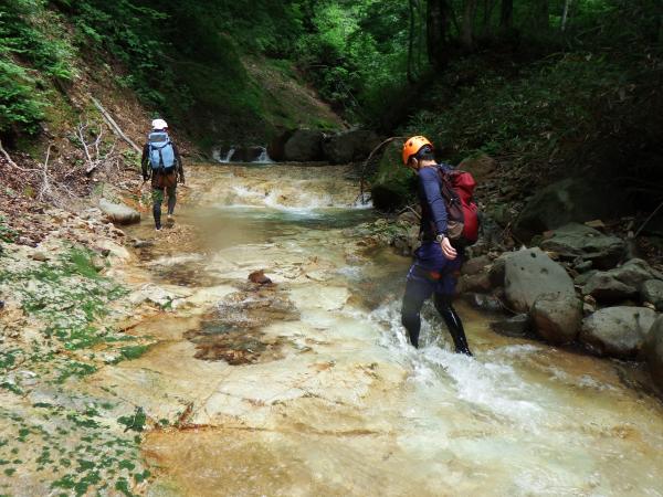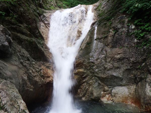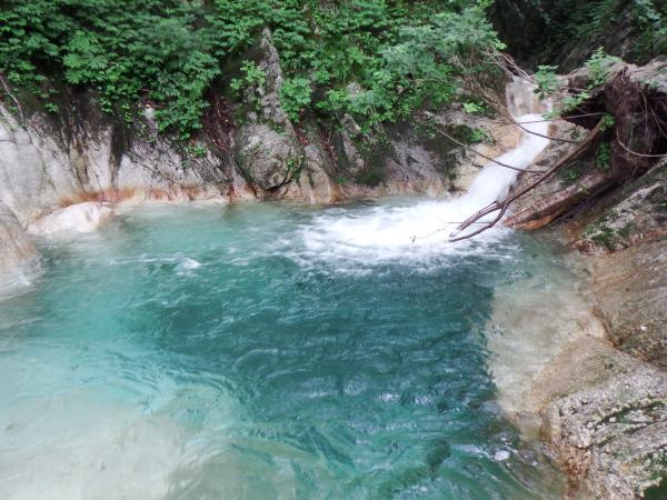今回のハイライトは美しいグリーンの釜です!日差しがもう少し強ければもっと綺麗に輝いていたでしょう。この沢は初めての方でも経験者と共に行けば楽しめるのでオススメです♪(やはり沢登なので緊張感はあります。)