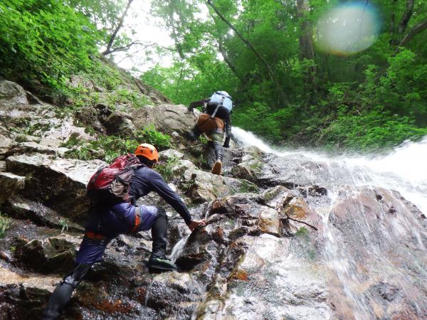 - 初心者向けの沢だが、高さのある滝もあるためロープ、ハーネス等のクライミング用品は必携。