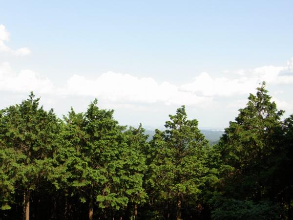 看板や道標があり、見晴らしの丘に向かう途中から登山道っぽい遊歩道に入って行きます。道は歩きやすく、子供と一緒に散歩に来たような地元の人しか歩いていませんでした。しばらく登ると左手に展望台があり、ここから数分で山頂です。