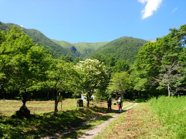 - 林道ゲート(40分)三斗小屋宿跡(10分)井戸沢堰堤(240分)流石山(20分)大峠(120分)三斗小屋宿跡(30分)林道ゲート