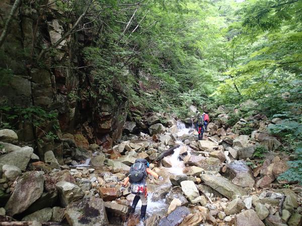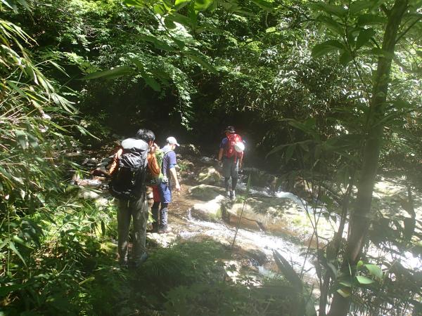 峠沢・中ノ沢の渡渉はとても滑りやすいので注意。また橋は流されていて使用できず、ルートも分かりにくいので要注意です