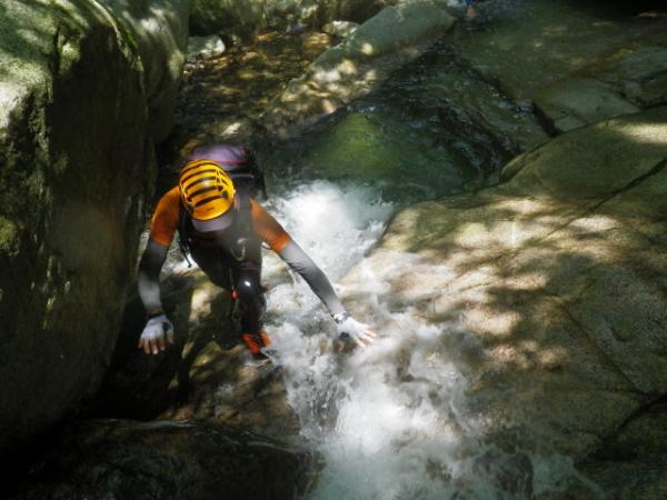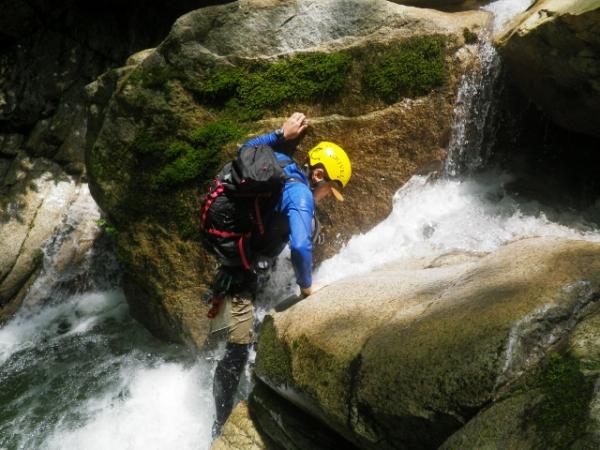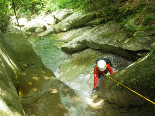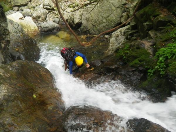 終盤の2段18m滝は沢登りが初めてのスタッフがいたので安全の為、ロープを出しましたがほとんどの滝は簡単に登れます。