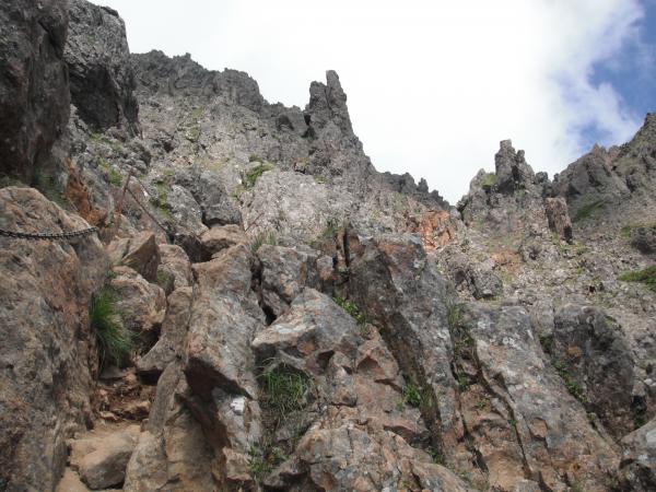 2日目は比較的なだらかな道を歩きますが、横岳付近の鎖場が危険です。