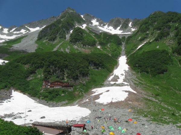 - ○涸沢ヒュッテ手前、涸沢~ザイテングラートには一部残雪あり。