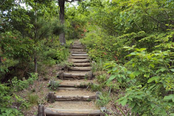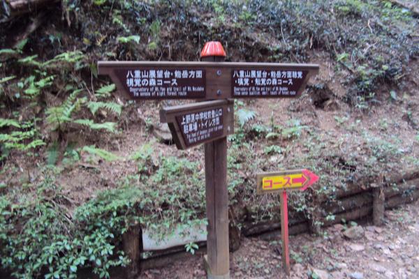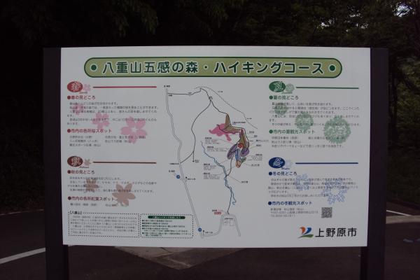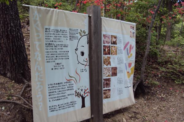それもそのはず、この八重山、近くの中学校が遠足に利用しているようで、コース上にたくさんの山に関する看板がちりばめられております。また、コースも視覚のコースと聴覚のコースといったように、わかりやすいコンセプトで分かれているため、その場で好みに合わせて選択して進むなど、普段の登山ではあまりない体験で楽しませてもらいました。