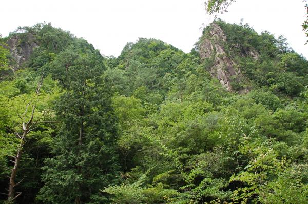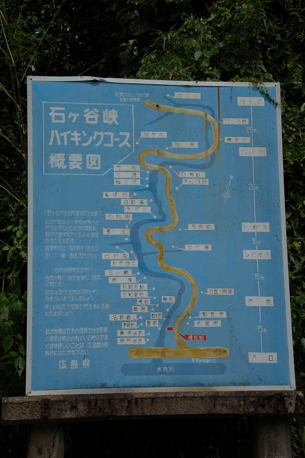 - 石ケ谷峡入口→(75分)→摩天岩付近→(45分)→石ケ谷峡入口