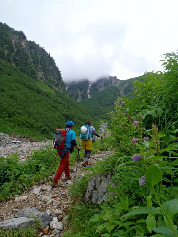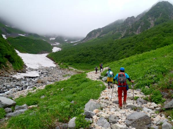 雪渓を3、4回登りますが、朝方は凍っている箇所もあります。