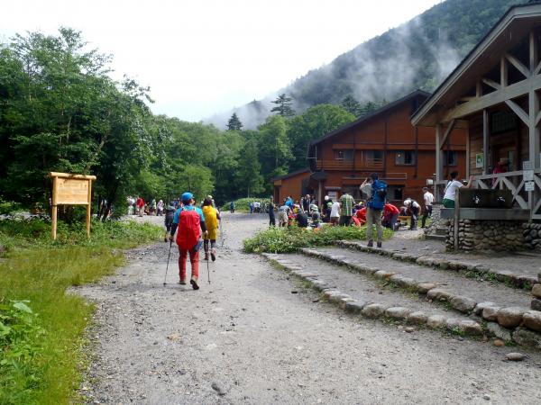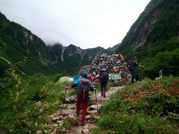 - (1日目)上高地 ⇒50分⇒ 明神 ⇒50分⇒ 徳沢 ⇒55分⇒ 横尾 ⇒90分⇒ 槍沢ロッジ ⇒30分⇒ ババ平 ⇒30分⇒ 大曲 ⇒60分⇒ 天狗原分岐 ⇒70分⇒ 殺生ヒュッテ分岐 ⇒100分⇒ 槍ヶ岳山荘