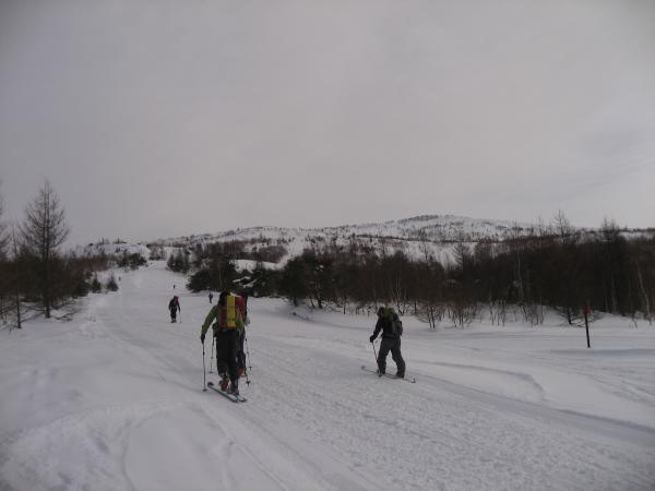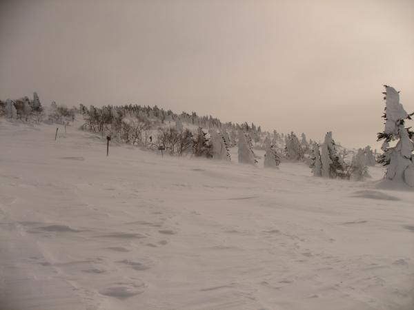 - 雪上車によって踏み固められてはいるが、スノーシューが必要。