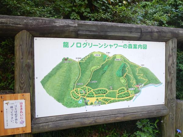 - グリーンシャワーの森駐車場-(20分)-南展望広場-(20分)-龍ノ口山頂上-(10分)-八幡宮分岐-(20分)-グリーンシャワーの森駐車場