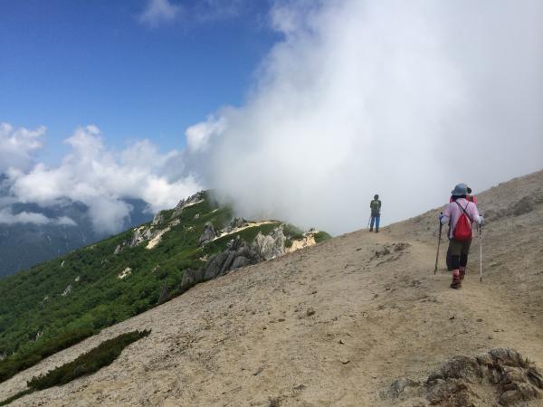 平日にもかかわらず登山者はかなり多く、日帰りで登っていそうな軽装の人も、テント泊で縦走しそうなくらい荷物を担いでいる人など様々でした。
