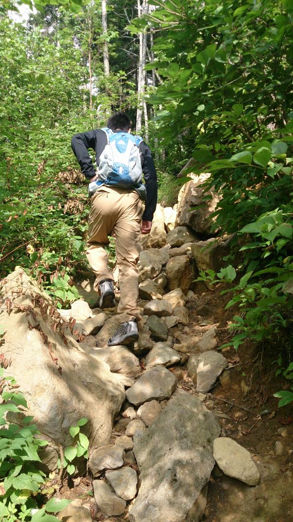 傾斜がきつく石や岩が多いため登り降りの際に落石を起こさないよう、当たらないよう注意が必要です。