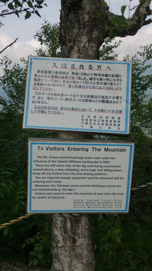 また、平成15年の十勝沖地震により頂上付近で大規模な崩落があり、現在でも第2展望台から先には「立ち入り自粛」を促す立て看板が設置されています。
