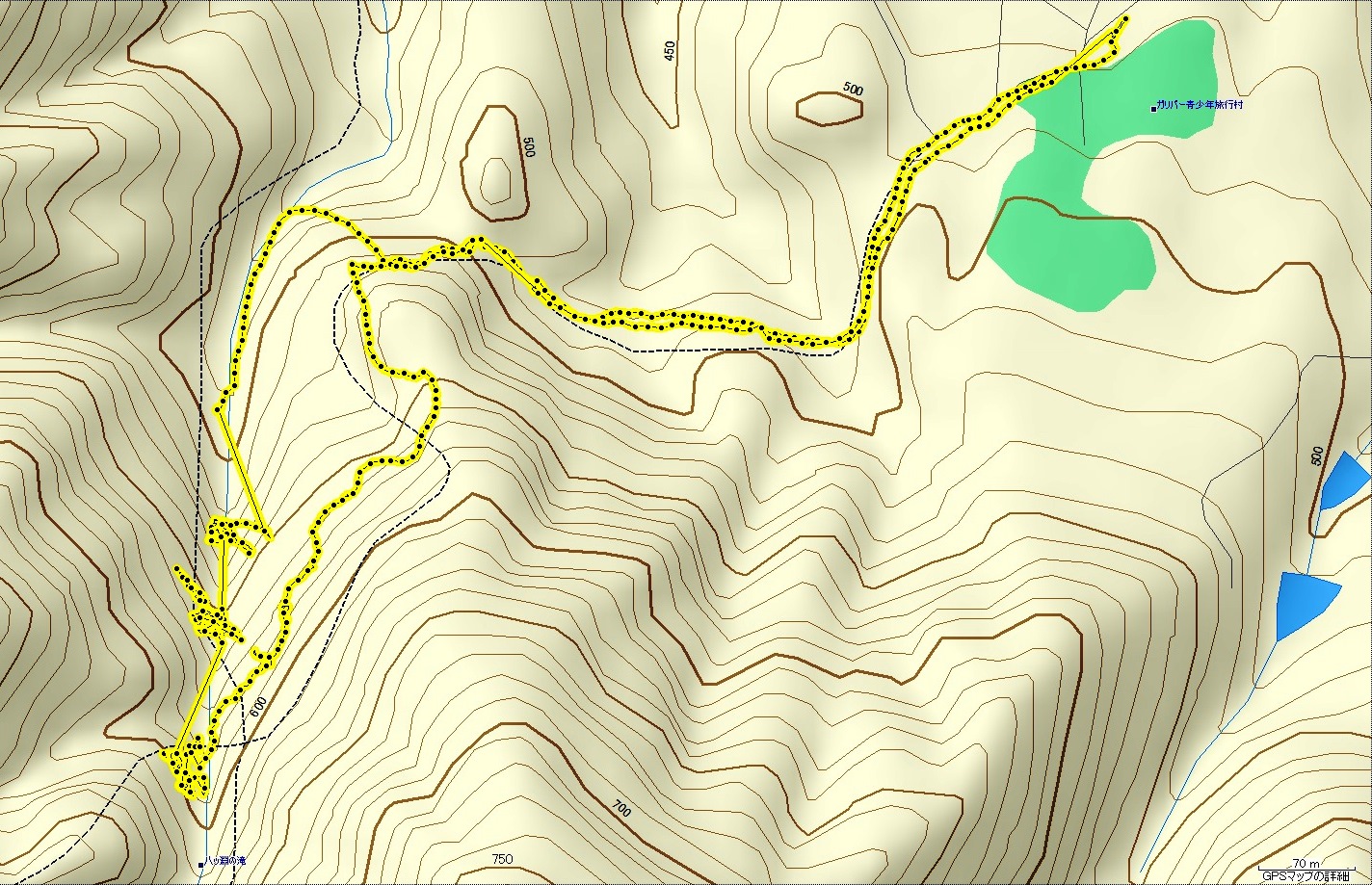 - 駐車場(17分)入渓地点(50分)大摺鉢(26分)駐車場