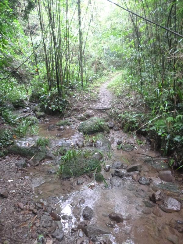 - 小雨が降っており、若干滑ります。