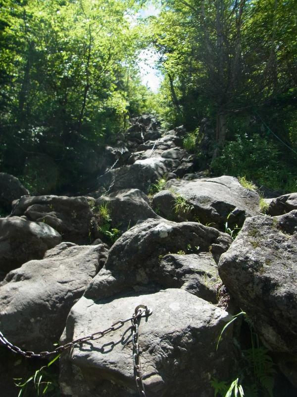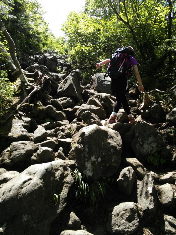 蓼科山荘から山頂は岩がゴロゴロしており、雨のあとは滑りやすいので注意が必要です。