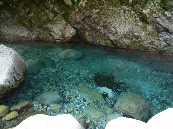 - 水がとても綺麗であまりヌメヌメした足場は少ないです。高巻は2カ所ほどあり、残置ロープがありました。初心者にはスリングで少し引っ張り上げてもらうと助かる場所が何か所ありました。