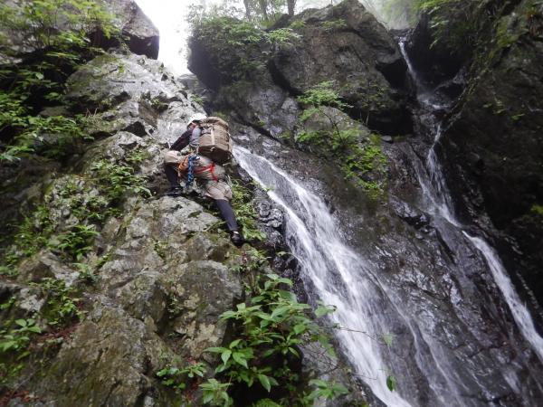 で、しっかりと撥水性と保温性、速乾性に身を包み、何とか快適に沢登を楽しめました。