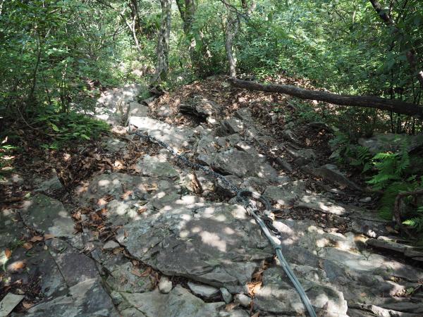 経ヶ岳から平谷越へは鎖やロープが設置している岩場が多いので慎重に。