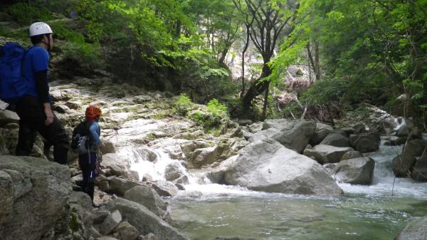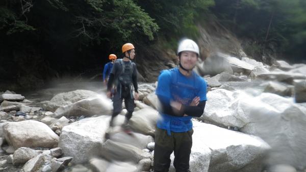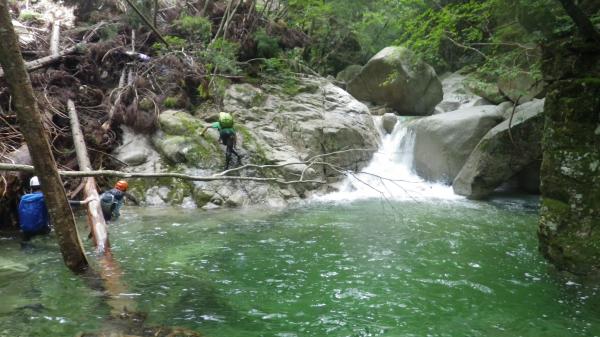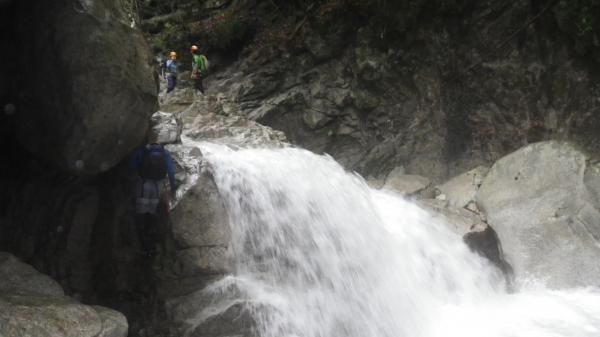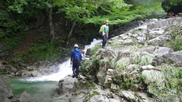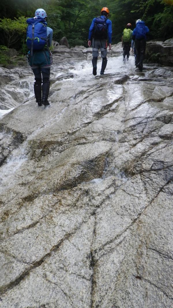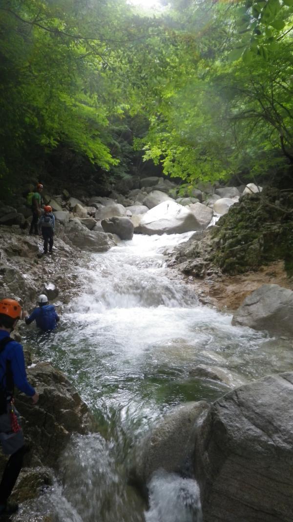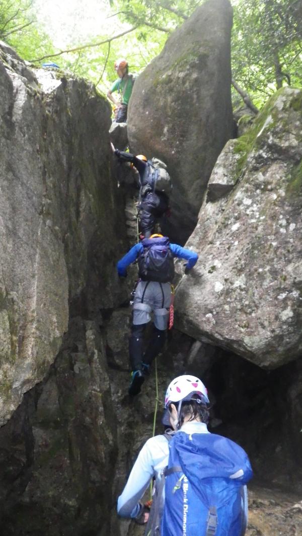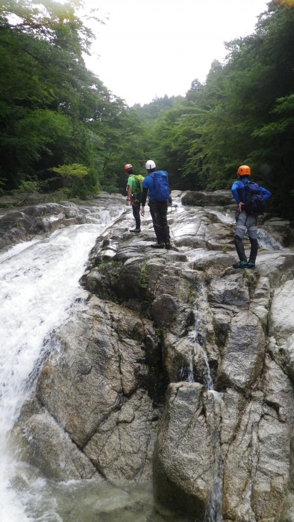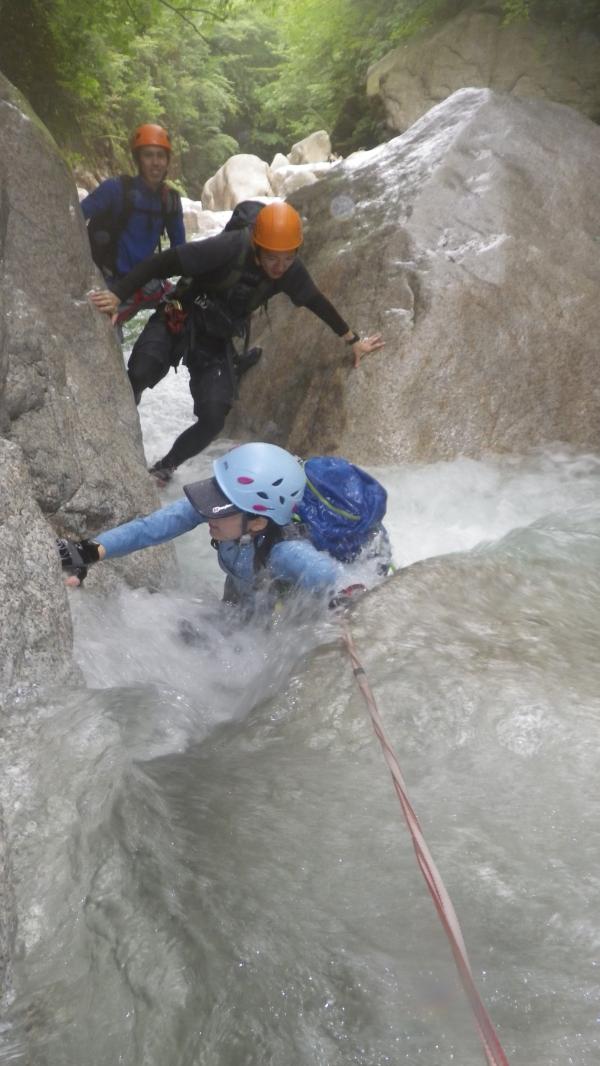 水圧が強くお助け紐も活躍する沢登りでした。水温はさほど低きなく最初の一撃を我慢すればあとは平気でした。