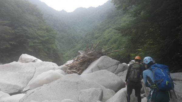 - 沢自体の難易度はさほどではない。踏み跡のない左岸尾根は滑り易く歩きにくい。