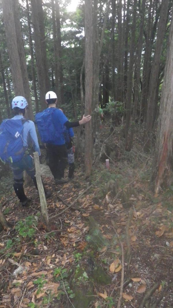 下降に使った仮称『赤坂谷左岸尾根』は踏み跡もまばらで途中からは踏み跡も分からないほど薄くなるのでGPSは必携です。沢の水量が多くなければ沢を下ることも可能です。実際に下降したこともあります。