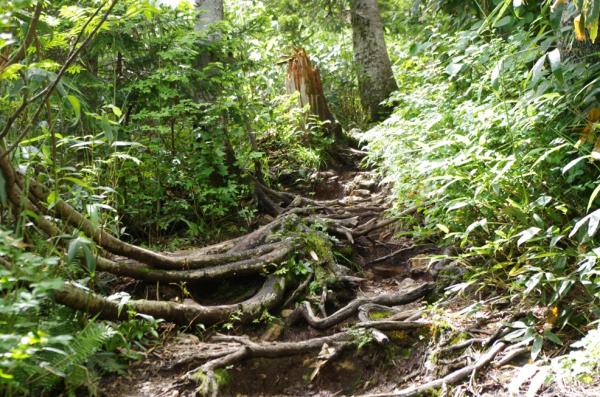ぬかるみ個所もあるのでゴアテックスなど防水素材のトレッキングシューズがお勧めです。