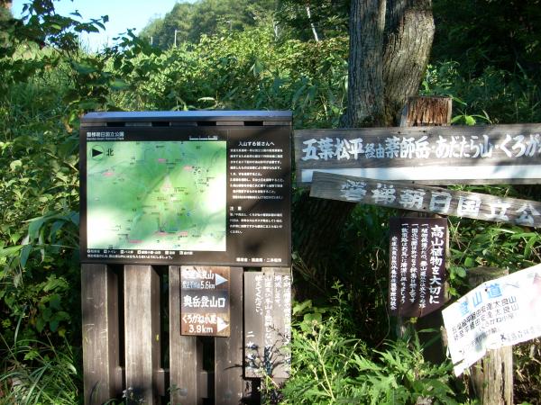 - 奥岳温泉(60分)勢至平(30分)くろがね小屋(35分)峰ノ辻(20分)馬ノ背分岐(15分)山頂(50分)あだたらエクスプレス山頂駅.