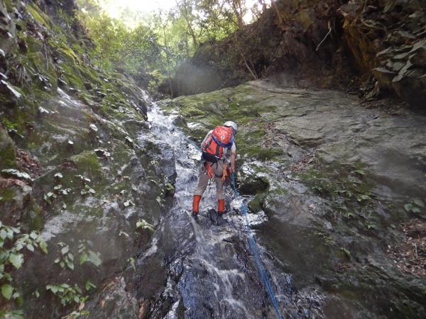 - 入渓点(15分)10m滝(30分)8×10m滝(40分)25m滝(2時間)入渓点