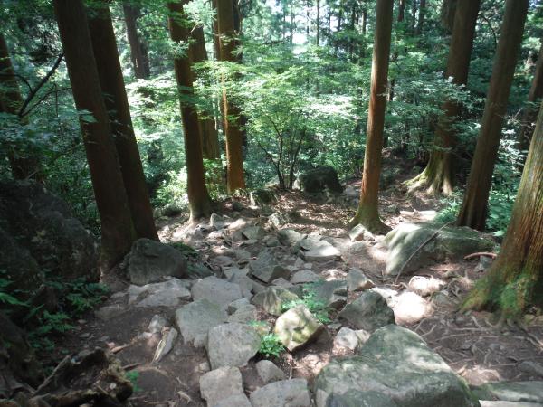 ■女体山から弁慶茶屋跡までは、大きな石が続く急な道です。下山に使う場合は足を取られないように。