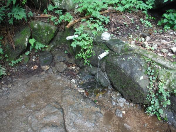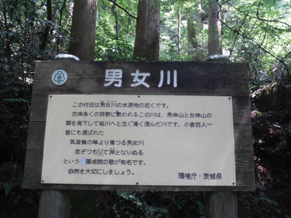 途中、ケーブルカーの姿を見ながら、一登りで男女川(みなのがわ)の上流に出ます。百人一首にも歌われた川です。水量は少なかったですが、冷たい清水でホッと一息できます。