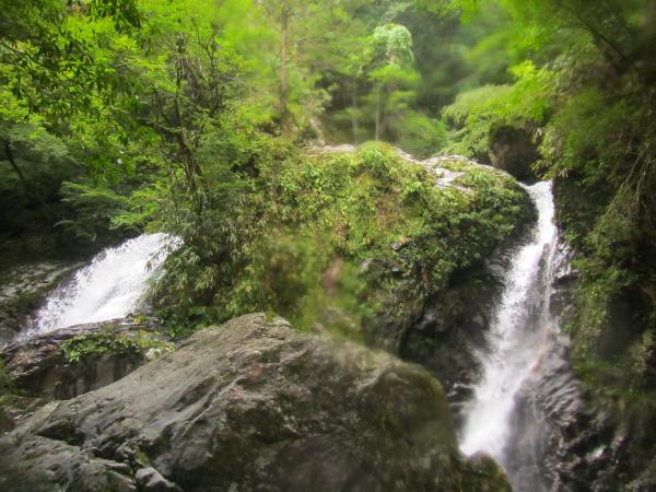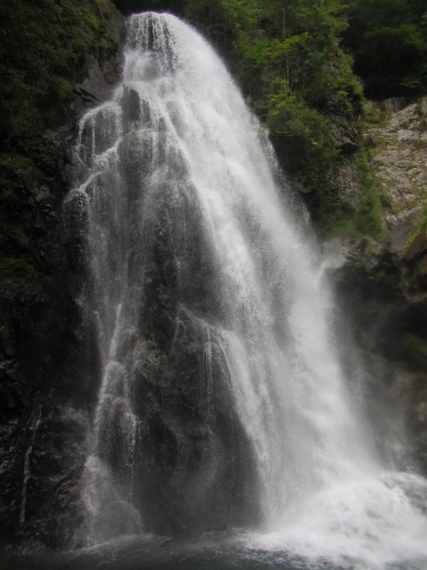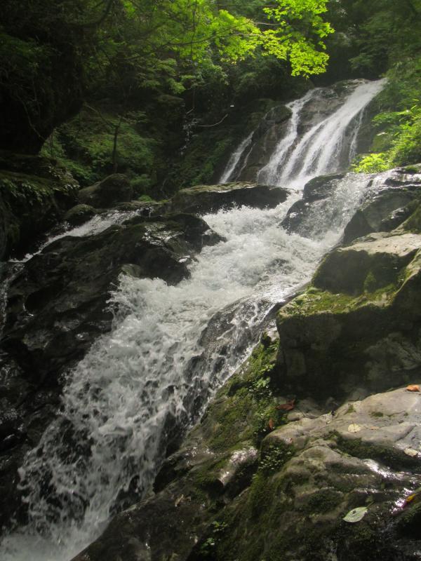 この連瀑は、「トユ滝」「煙突滝」「鋤滝」と名のある美瀑で、上から見下ろすだけでも、その迫力ある水のたぎりに圧倒されてしまいました。