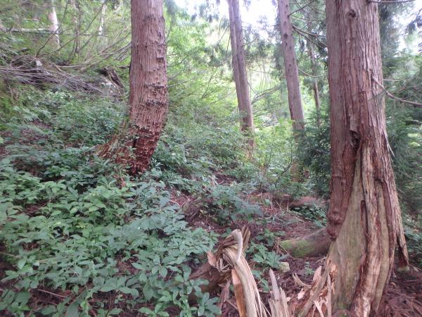 このルートでは、かなり斜面を登り、また下り、その後斜面を登って林道へ合流します。