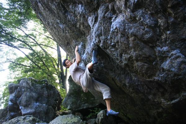 この時期は草がボーボーで、湿気も多く、どの岩も高難度をトライするのはかなり無理がありました。