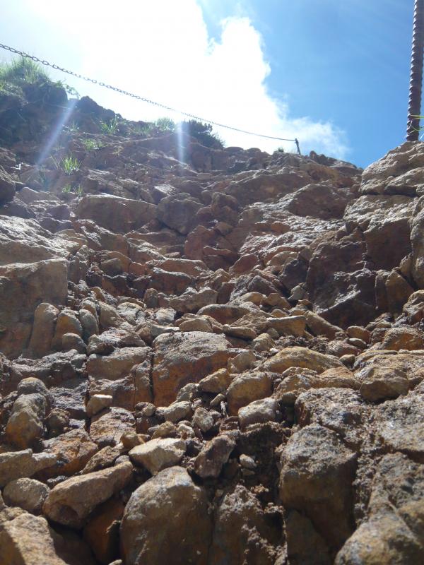 山頂付近は反り返った鋭利な岩場が多いですが、きちんと足場を確認して登れば問題なしです。