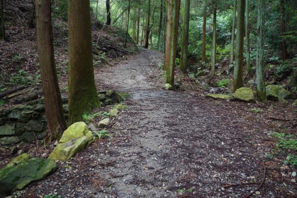- 細野キャンプ場<6M>緑者不動滝<5M>東海自然歩道分岐<20M>道樹山<25M>細野キャンプ場