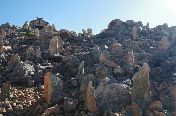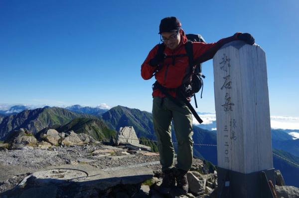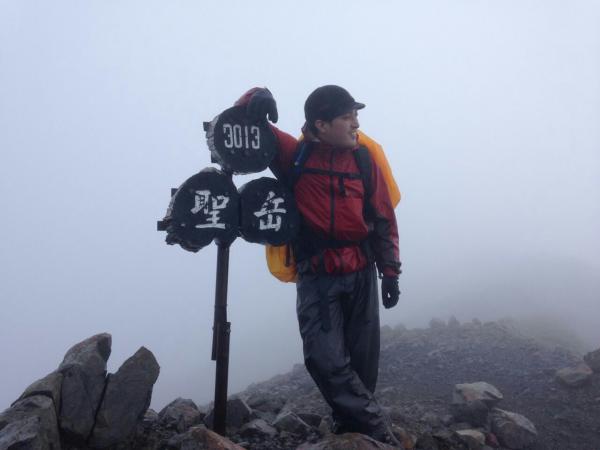 森林限界を超えた所から風が強くなりましたが、奥聖に着いた時に単独で登っていた女性の方に写真を撮っていただきました。あの強風の中で、ありがとうございました。