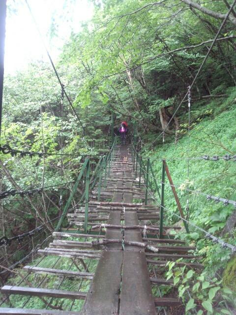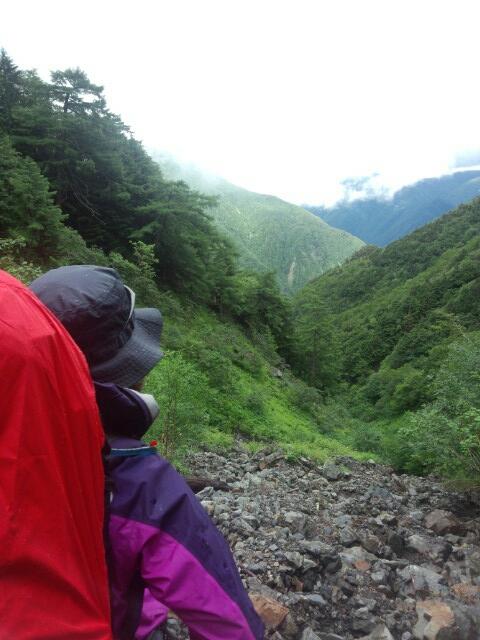 赤石岳東尾根の赤石小屋までの登山道は一部崖をトラバースする様になっていて非常に細い所があります。