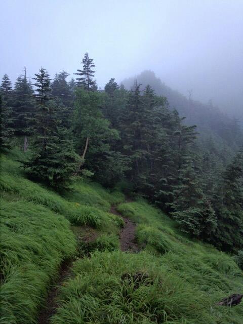 翌日は残念ながらガスが出ていました。だけど、気を取り直して出発!