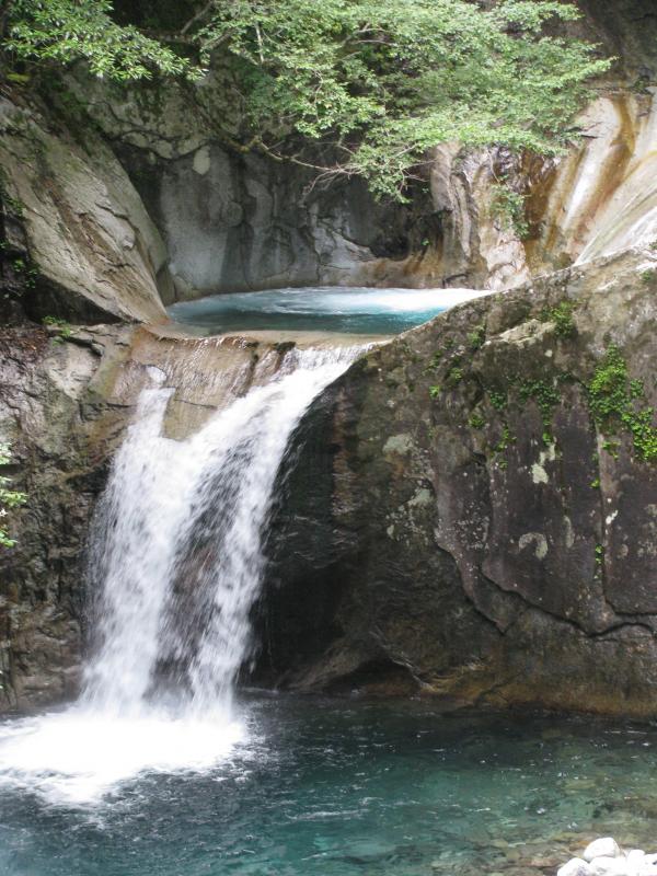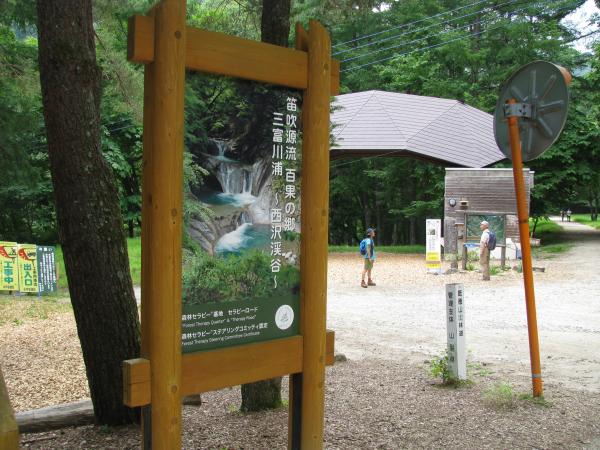 - 西沢渓谷入口駐車場(30分)トイレ(60分)七つ釜五段ノ滝(30分)終了点(60分)駐車場