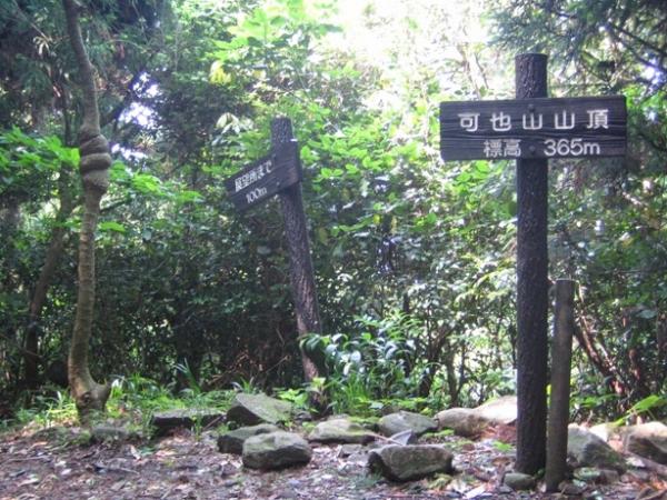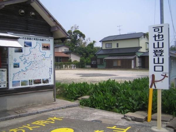 - 師吉公民館前>5分>登山口>30分>お社>3分>可也山山頂>2分>頂上展望所>20分>登山口>4分>師吉公民館前