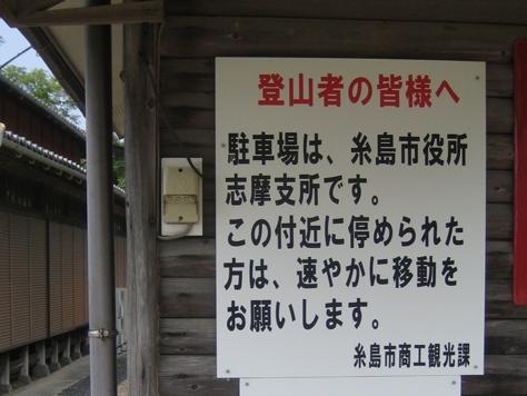 - 師吉公民館前に登山口の案内板があります。本などにはここに車が停められるように記載されていますが、現在は駐車禁止で、歩いて10分程の糸島市役所の分署に駐車して下さい。登山道自体は一本道で迷う事はありません。頂上手前までは一気の登りです。休憩を上手くとりながら登って下さい。