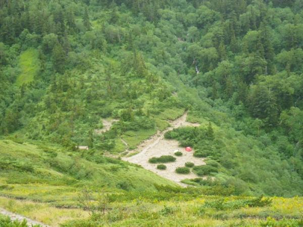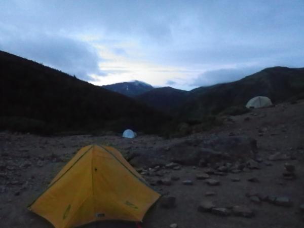 もうちょっと行けるかと思って歩き続けましたが、さらに近くで雷鳴が響き、慌てて引き返しました。怖かったです・・・。翌日、天気が少し回復したので頂上を一気に往復し、帰りました。こういう時は軽い装備が役にたちます。