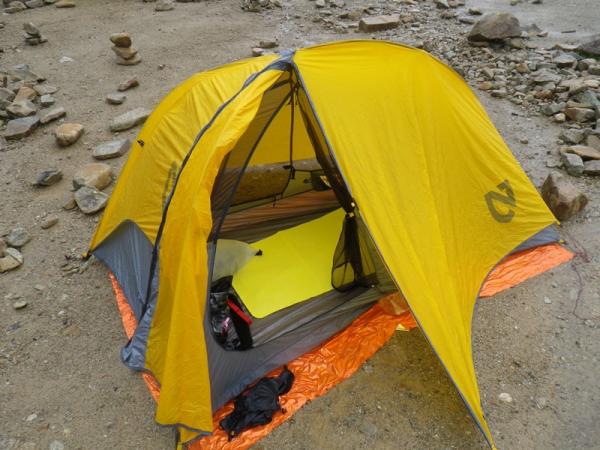 テン場に着いても雨は降り続き、仕方なく雨中でテントを張りましたが、もちろん本体の中までびしょびしょに濡れてしまいました。これは予想していたことなので水分吸収量の多いパックタオル・パーソナルが活躍。軽さ重視ならパックタオル・ナノですが、何回も絞っては拭きを繰り返す手間を考えるとパーソナルの方が断然楽です。