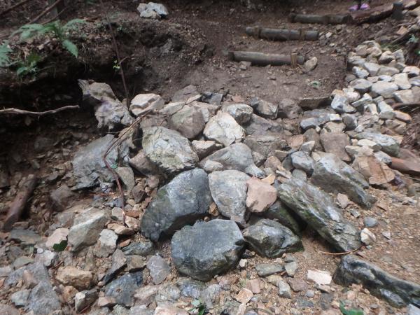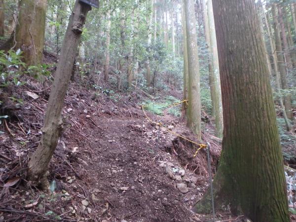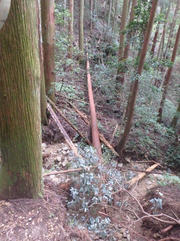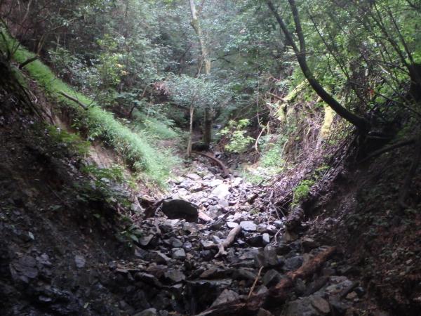 上部は沢筋沿いの道が土が削り取られ、沢を直登しているようです。