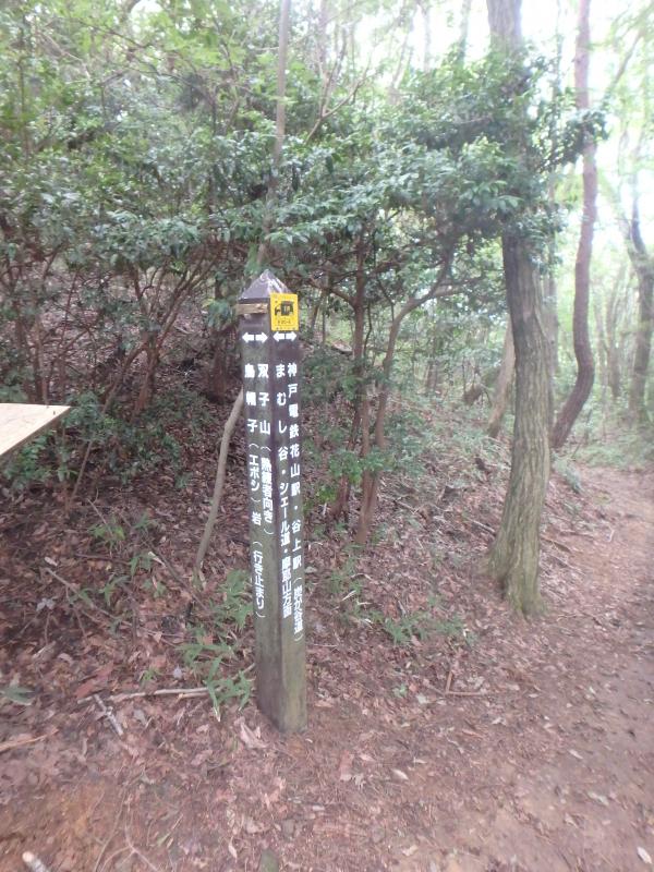 - 神鉄谷上駅(15分)登山道入り口(60分)まむし谷・烏帽子岩分岐(10分)展望台(20分)黄蓮谷(30分)トゥエンティクロス分岐ヌケ谷へ(25分)西六甲ドライブウェイと合流(10分)市立森林植物園