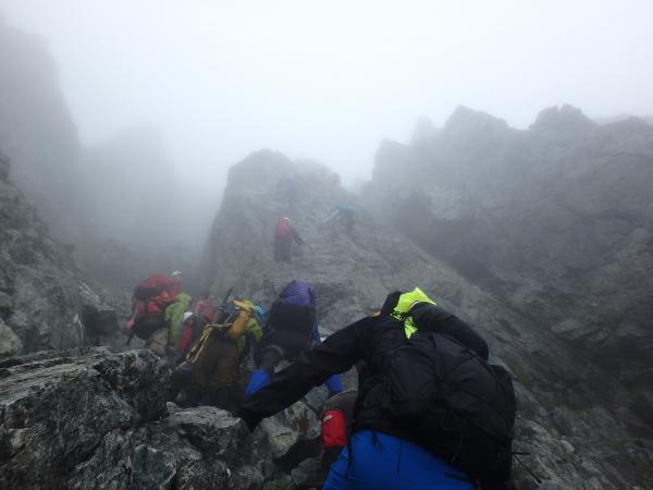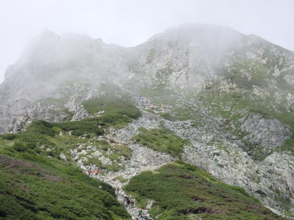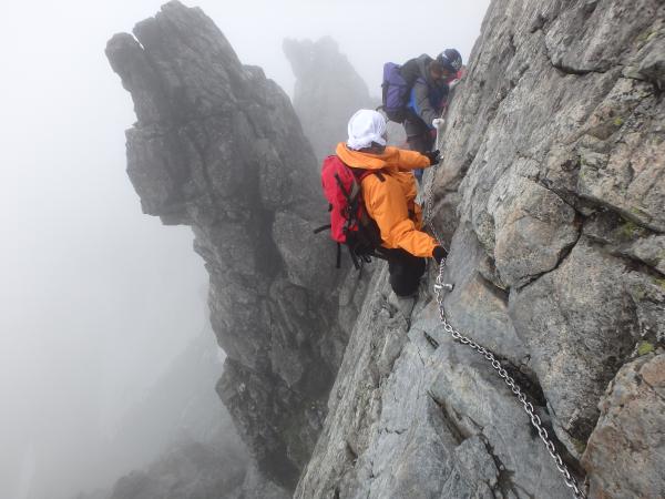 立山の縦走路は一ノ越から富士の折立を下ったところまでがガレ場ですが、それ以外は特に危険箇所はありません。剱沢から剱岳にかけてはガレ場、岩場のアップダウンが続くため、足元に注意して歩く必要があります。また、落石にも注意が必要です(カニのタテバイで落石がありました。また、登り用の登山道の下を下り用の登山道が通っている箇所もあります)。