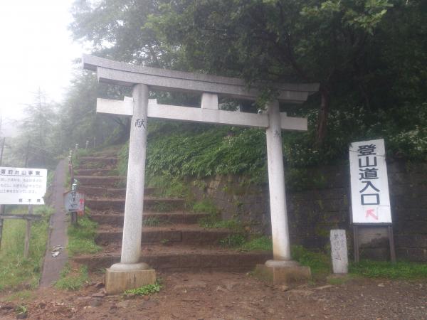 まずは登山口の二荒山神社中宮祠で氏名、住所等記帳し入山料を支払います。金額は500円。この日は土曜日でしたが、あいにく小雨のぱらつく天気で午前7時30分ほどで登山者は35人程。天気が良いときは70人以上おられるようです。