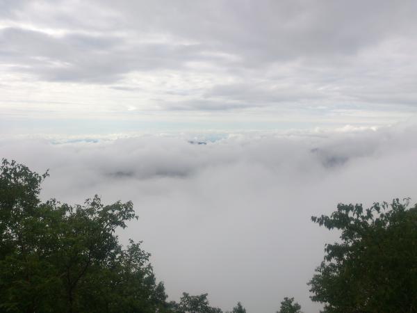 9合目を越えると展望がひらけます。中禅寺湖もばっちり!15分ほどで山頂に到着です。天気が良ければ富士山も見えますよ。